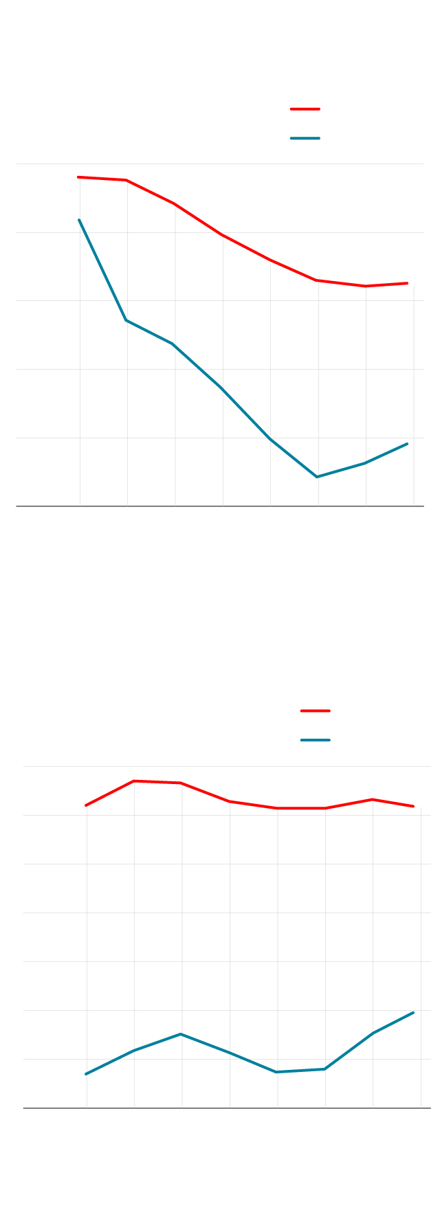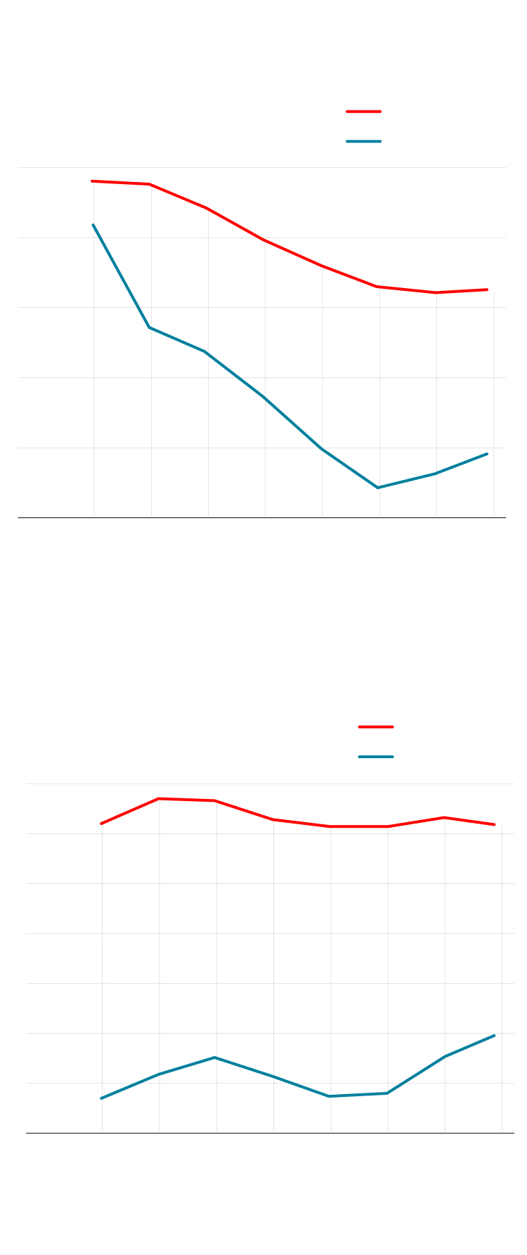 La indecisión también se evidencia en el gasto. A nivel agregado, este se ha estabilizado en torno al 41,5% del PIB, seis puntos por debajo de la media europea y un nivel similar a hace una década. Este es un hecho que esconde dos realidades distintas. Por una parte, el gasto comprometido —protección social y otros dispositivos que tienden a reconducirse un año tras otro— ha crecido cuatro puntos. Al mismo tiempo que el gasto “no comprometido” —inversión, I+D+i y otras acciones que dependen directamente de los PGE de cada ejercicio— se reducía en esa misma proporción.