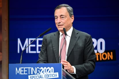 El gran artífice de la muleta monetaria en la que la eurozona se apoyó para superar los momentos más delicados en la última crisis de deuda vuelve a la palestra tras meses de silencio. El expresidente del Banco Central Europeo (BCE) Mario Draghi ha alertado este martes, durante su intervención en un foro celebrado en Rimini (Italia), de que el “acertado” esfuerzo fiscal europeo para hacer frente a la pandemia, sin precedentes en tiempos de paz, es sostenible “solo si [el dinero levantado en los mercados] se dedica a fines productivos: capital humano, infraestructuras cruciales para la producción e investigación”. En ese caso, ha dicho el banquero central italiano, será “deuda buena”. Si, por el contrario, las nuevas obligaciones asumidas con los acreedores tienen como destino “propósitos improductivos”, será “deuda mala y su sostenibilidad se erosionará”. Los tipos de interés ultrabajos, ha remarcado, no son por sí solos una garantía de sostenibilidad: “la percepción sobre la calidad de la deuda incurrida es igual de importante. Y cuanto más se deteriora esa percepción, más incierto será el marco de referencia, poniendo en peligro el empleo, la inversión y el consumo”.