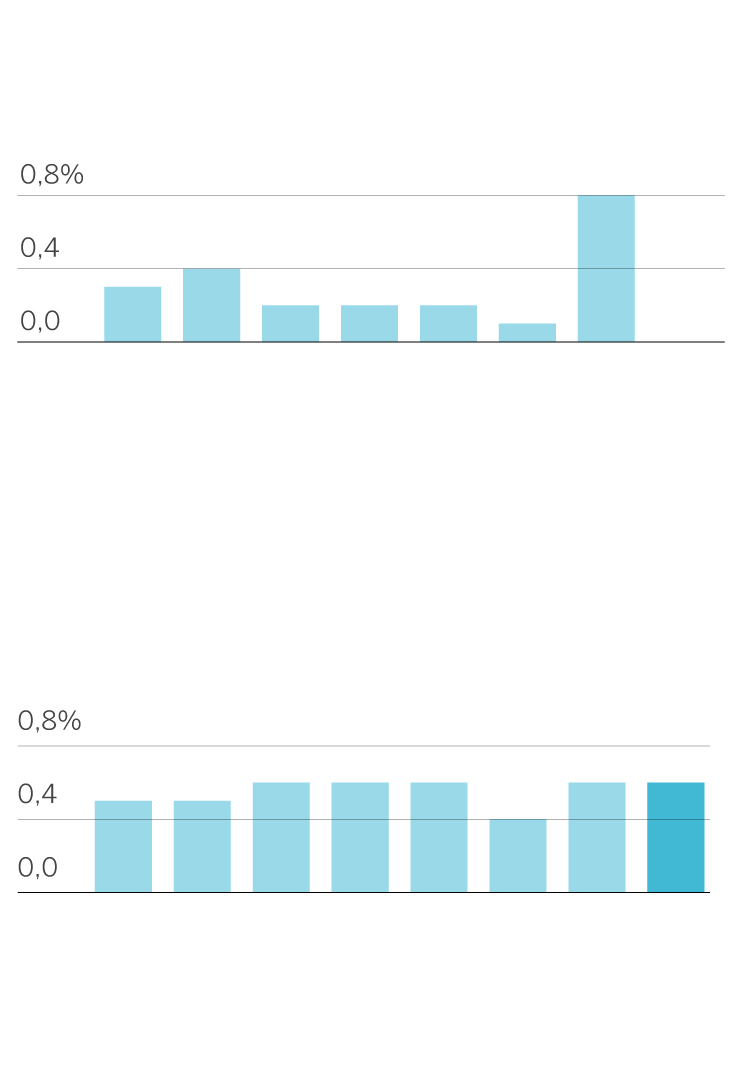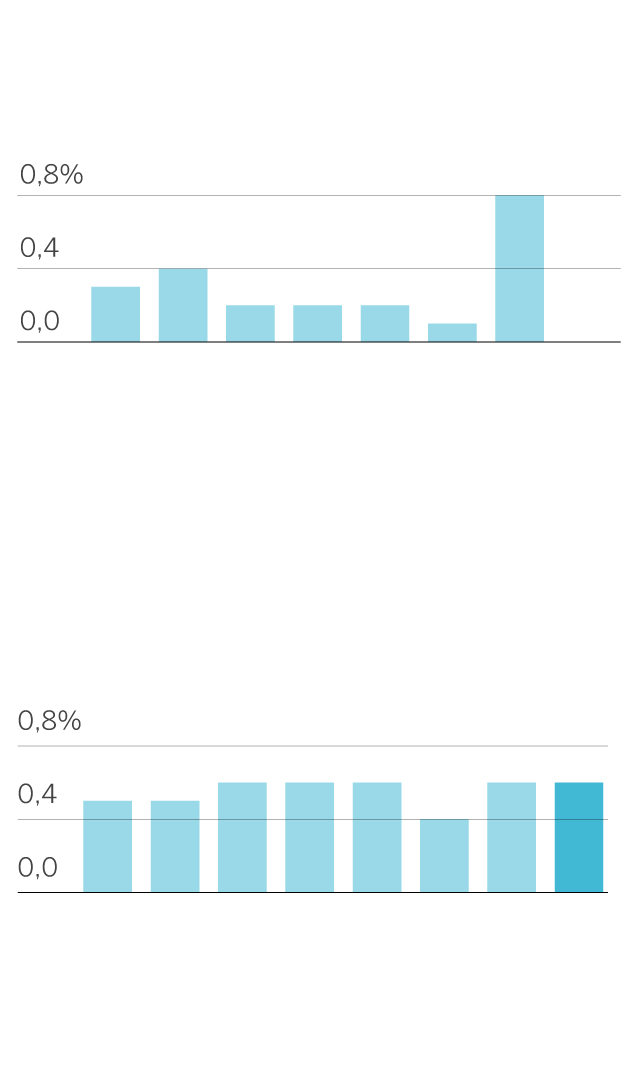 Por el contrario, el punto más preocupante se halla en la demanda interna, que en el trimestre cae a pesar de las subidas de salarios y la creación de empleo. Ni las compras de los hogares ni la inversión empresarial crecen. En términos anuales, el consumo de las familias prosigue su gradual ralentización una vez se ha agotado el fuerte rebote que vivió tras la crisis. En 2019, el salario mínimo aumentó un 22,3%. Y la remuneración por asalariado subió un 3,2% en las Administraciones y un 1,6% en el sector privado no agrario, las mayores alzas desde principios de la crisis. Pese a estas mejoras, el consumo se anotó el peor comportamiento respecto al PIB desde el comienzo de la recuperación: en 2018 el PIB sumó un 2,4% y el consumo de los hogares, un 1,8%. En cambio, en 2019 el PIB creció un 2% y el consumo, un 1,1%.