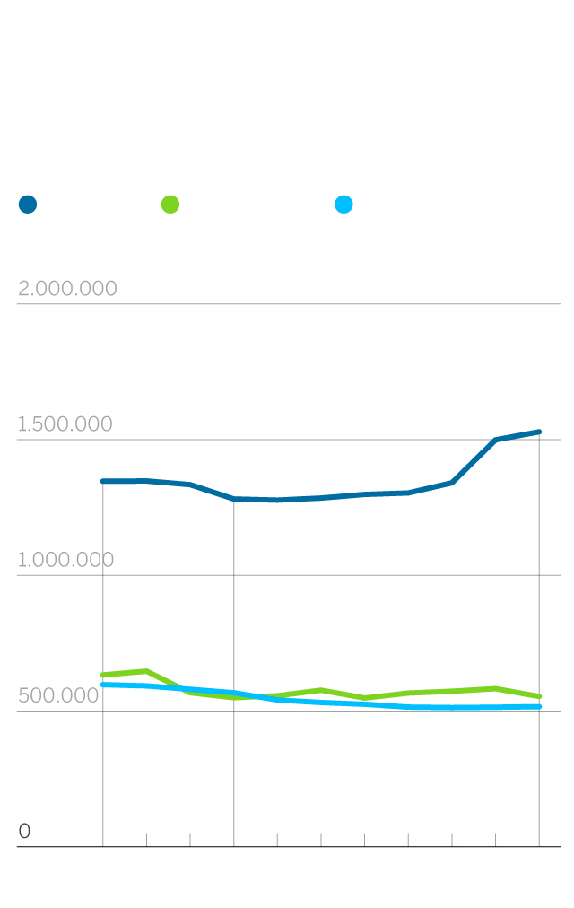 Desde 2011 el número de funcionarios ha descendido un 12%, el de laborales, un 15% y otro tipo de personal ha crecido un 62%.