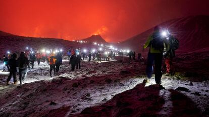Miles de personas se han acercado en los últimos días a la zona, unos 30 kilómetros al suroeste de la capital y principal puerta de entrada a Islandia —Reikiavik— para asistir al espectáculo de toneladas de lava de color naranja manando de la tierra. “Es una erupción turística perfecta”, apunta Thorvaldur Thordarson, profesor de Vulcanología de la Universidad de Islandia en declaraciones a la cadena británica de televisión Sky News, que recomienda a los visitantes “no acercarse demasiado”. Según sus cálculos, desde la erupción inicial, hace casi dos semanas, la lava sale de la tierra a un ritmo de 10 metros cúbicos por segundo. Un flujo continuo suficiente como para que el magma no se solidifique.