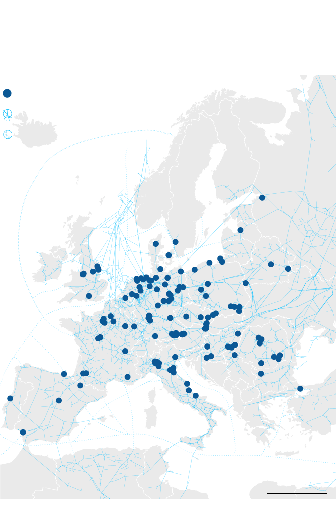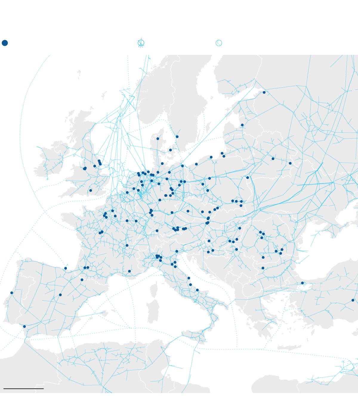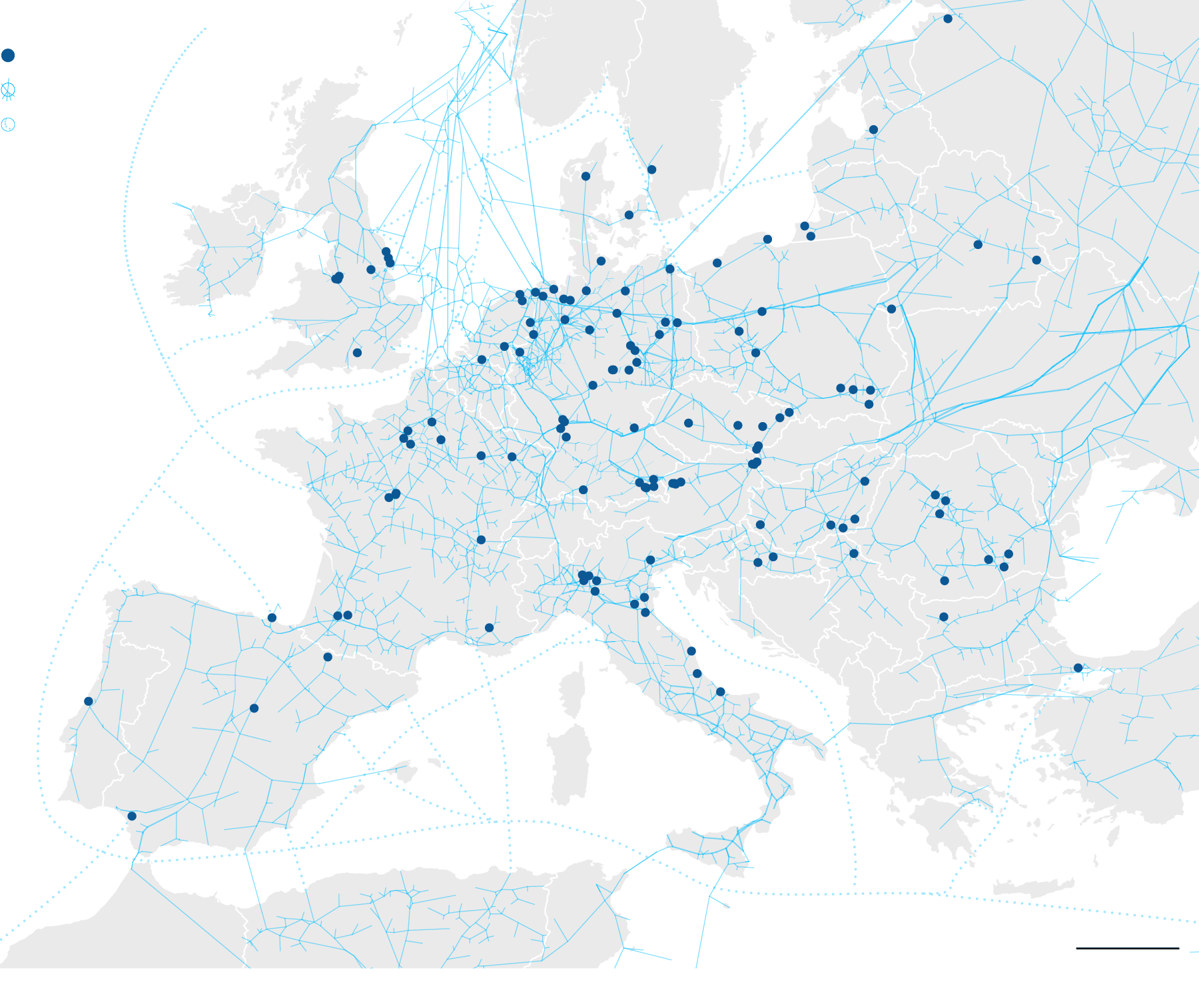 Gasoductos, almacenes subterráneos y rutas marítimas en Europa