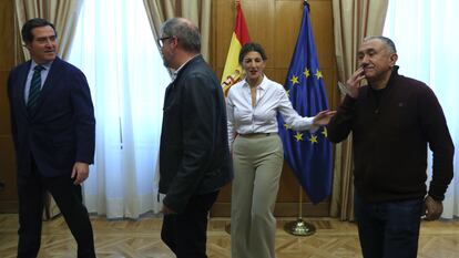 Las tres prórrogas de los expedientes de regulación de empleo (ERTE) para afrontar el impacto de la covid, la subida del salario mínimo interprofesional, la regulación del teletrabajo, la creación de la ley rider, y las reformas de pensiones y del mercado del trabajo han copado las agendas del presidente del Gobierno, vicepresidentas, ministros, secretarios de Estado, sindicalistas y representantes de los empresarios durante los últimos 12 meses. A pesar del enorme desgaste que han padecido todos ellos, las fuentes consultadas comparten valoración: hay satisfacción por haber cumplido con su deber.