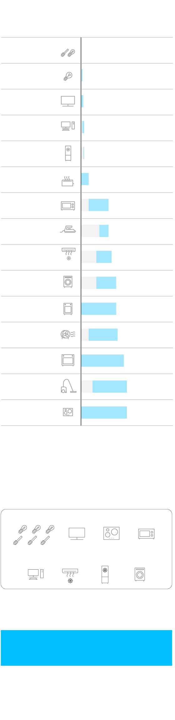Los profesionales de la energía estudian sus hábitos de forma pormenorizada, pero si quiere hacerse una idea rápida de si paga más de lo que necesita, esta simulación puede ayudarle a hacer una primera aproximación. El ejercicio es sencillo: de los ejemplos que se muestran a continuación, sume todos los aparatos que suele tener encendidos a la vez.