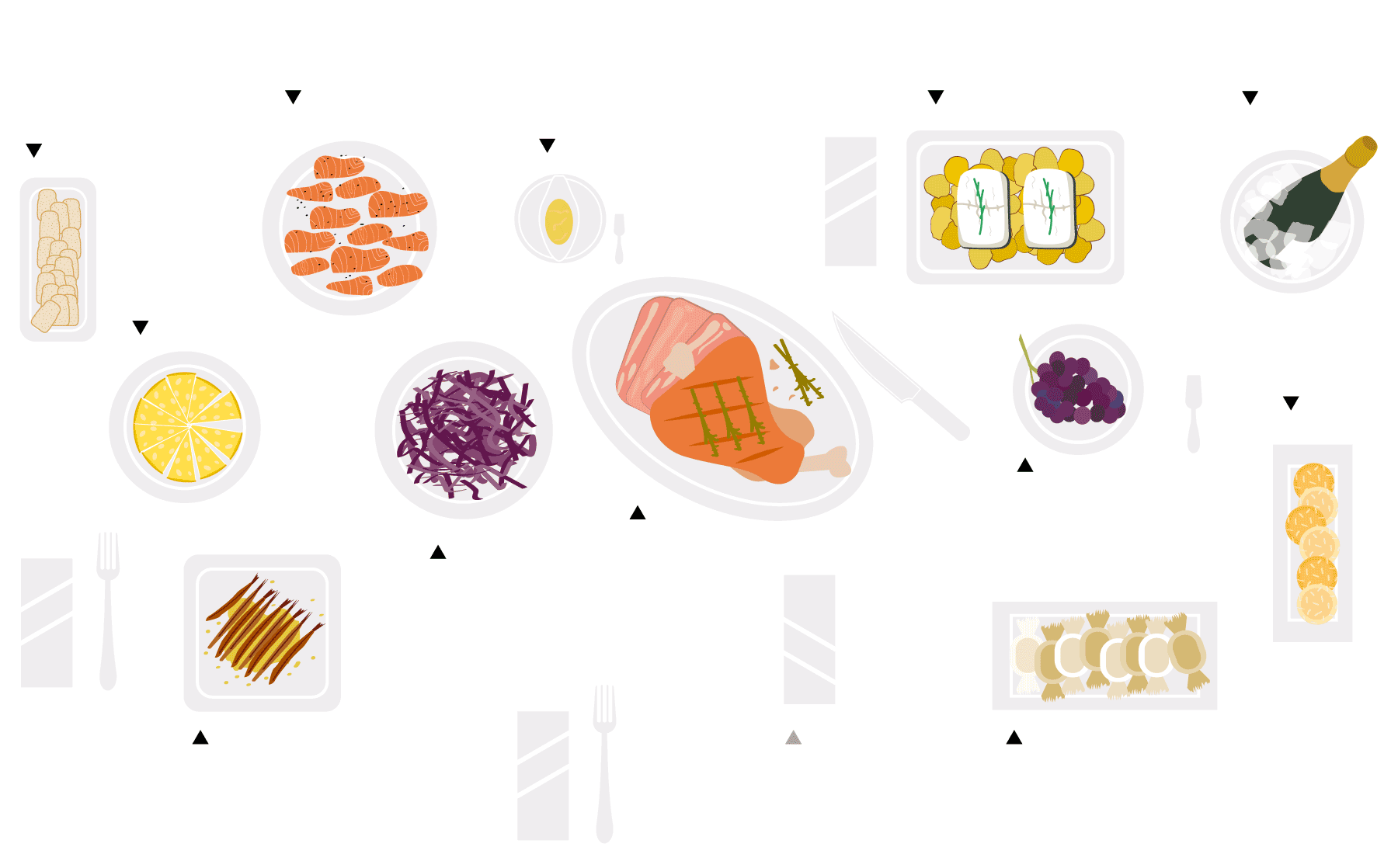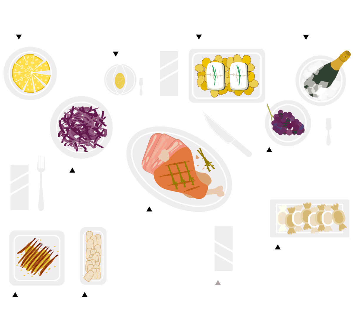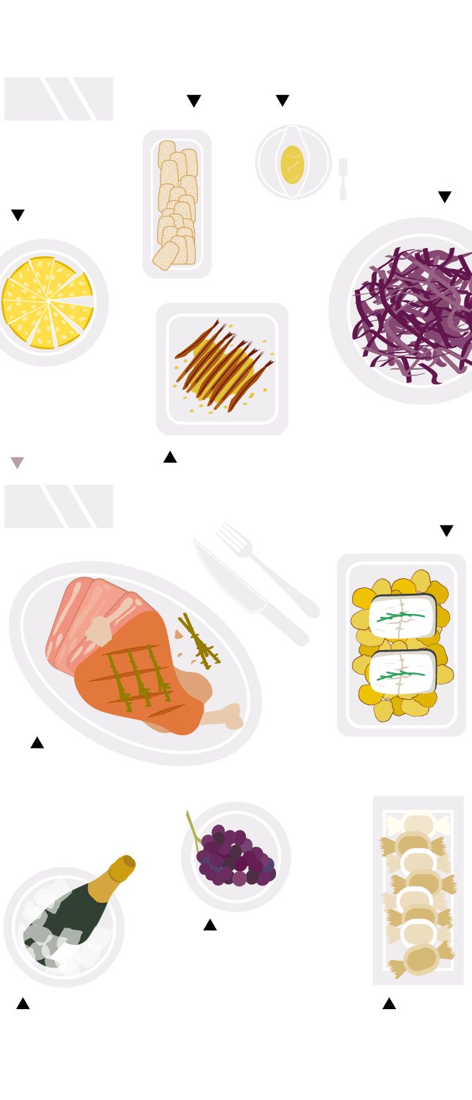 EL PAÍS ha analizado los precios de centenares de artículos de una treintena de platos típicos de una comida navideña: desde el jamón hasta el mazapán, pasando por el cordero. Los datos, recopilados por Datamarket, incluyen productos de marcas y supermercados distintos. A continuación repasamos cómo han subido los precios respecto a las Navidades pasadas, plato a plato.