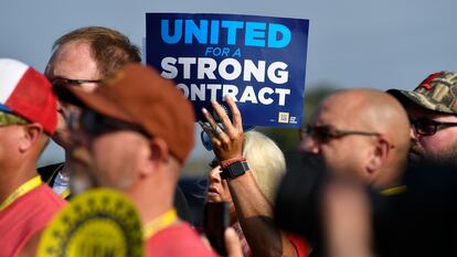 “Por primera vez en nuestra historia, haremos huelga en los tres grandes a la vez”. En una intervención a través de Facebook, Shawn Fain, el líder de United Auto Workers (UAW), el sindicato del sector del automóvil, convocó la noche del jueves una huelga selectiva contra General Motors, Ford y Stellantis en Estados Unidos a partir de este viernes, ante la falta de acuerdo sobre el nuevo convenio colectivo. Fain calificó de “histórico” el momento. Este viernes, el presidente de Estados Unidos, Joe Biden, ha hecho una declaración en la Casa Blanca en la que se ha puesto del lado de los trabajadores. Ha indicado que “nadie quiere una huelga”, pero que los empleados merecen una “parte justa” de los beneficios récord que están logrando las compañías.