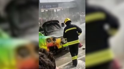 En las imágenes se puede observar cómo el propietario del vehículo está disfrutando de cómo los tubos de escape de su coche sueltan fuego, hasta que algo sale mal y la parte trasera acaba ardiendo. Luego tienen que intervenir los bomberos. En unos rótulos sobrepuestos en el vídeo se lee: “Final Feliz!”. Aunque el final no lo fue tanto.