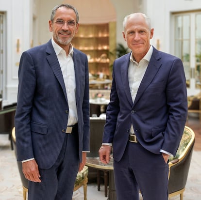 El consejero delegado de The Adecco Group, Denis Machuel, y su presidente del consejo de administración, Jean-Christophe Deslarzes, son la cúpula directiva de una de las mayores multinacionales dedicadas a reclutar trabajadores para las empresas de todo el mundo. Ambos tienen claro que el futuro de la economía, y en particular de los mercados laborales, pasa por una buena utilización de la inteligencia artificial (IA). Este es uno de los mensajes que trasladan en una entrevista conjunta con varios medios españoles, entre ellos EL PAÍS, aprovechando una visita a Madrid. La pérdida de empleos por la irrupción de la IA es uno de los temas candentes en el sector y Machuel no rehúye la cuestión: “Va a destruir algunos puestos, pero creará otros muchos”, afirma. Y consciente de que esa respuesta va a suscitar automáticamente la siguiente pregunta, bromea: “No tenemos una bola de cristal”. También apuntan qué capacidades necesitarán los trabajadores del futuro más inmediato, entre ellas, la capacidad de discernir lo que es real y lo que no.