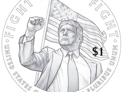 El culto a la personalidad que la figura de Donald Trump está generando en Estados Unidos dio la semana pasada una nueva vuelta de tuerca con la noticia de que el Departamento del Tesoro planea acuñar una moneda con la efigie del presidente para conmemorar el 250 aniversario de la independencia del país, que se celebrará el próximo año. Pero sus intenciones se han topado con una ley aprobada en 1866, hace 159 años, que pone trabas a que figuren personas vivas en ellas.