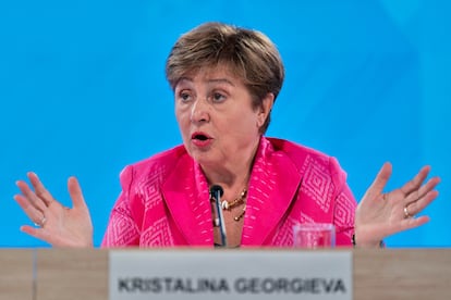 Analizar la economía hoy en día es como conducir en un día de espesa niebla. Apenas se ve más allá de dos metros. Para tratar de capear esta inclemencia en un mundo cambiante, la directora gerente del FMI, la búlgara Kristalina Georgieva, ha dejado este miércoles una ristra de pistas a los líderes mundiales. “Abróchense los cinturones, la incertidumbre es la nueva normalidad y está para quedarse”, ha advertido. Se ha reservado el mensaje más nítido para Europa, a la que ha urgido a actuar ya para emprender reformas y no quedarse definitivamente descolgada.