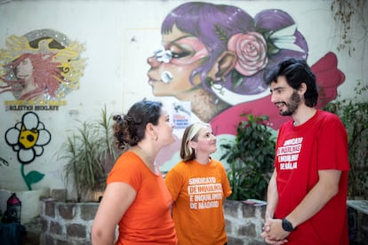 Un centenar de miembros de organizaciones de toda España —hay sindicatos ya formados en Madrid, Málaga, Cádiz, Sevilla, Zaragoza, Vigo, Ibiza y Formentera, además de los que engloban a Cataluña y Asturias, y otros formándose en Valencia, Mallorca, Almería, Guadalajara y Segovia— participan en el encuentro, que busca principios políticos y organizativos, además de una metodología conjunta. Todo, para fundar las bases del que denominan “sindicalismo inquilino”. “Estamos en un momento crucial para el movimiento de vivienda. Hay que reforzar las técnicas que han resultado exitosas para enfrentarse a un mecanismo depredador como el rentismo”, ha insistido Kike España, portavoz del Sindicato de Inquilinas e Inquilinos de Málaga. Fue uno de los primeros en nacer, en 2017. Y la manifestación que impulsó en verano de 2024 sirvió para que otras muchas ciudades comenzaran a organizarse, para repetir meses más tarde la marcha en diversos puntos del país y, finalmente, promover una protesta estatal celebrada el pasado mes de abril. En total, más de medio millón de personas salieron a la calle, según cálculos de los organizadores.