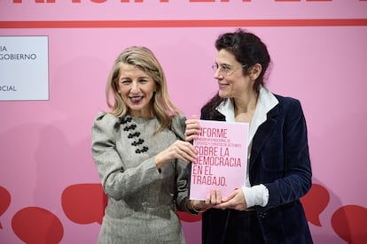 Esa Comisión de Expertos sobre Democracia en el Trabajo ya tiene su informe, y este lunes se lo ha presentado a Díaz. El texto propone al Gobierno que apruebe, entre otras cosas, un modelo de cogestión empresarial en el que un tercio de los puestos del consejo de administración sea para los trabajadores en empresas de entre 50 y 1.000 empleados; y, en compañías de mayor tamaño, ocupen la mitad de esos sillones en el órgano de dirección de la empresa. Pero su propuesta va más allá en el grado de participación y reclama al Ejecutivo que establezca un plan para que los empleados tengan acceso a la propiedad de la compañía, poniendo a su disposición como mínimo un 2% de sus acciones (en empresas a partir de 25 trabajadores).