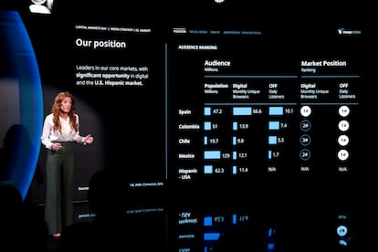 Pilar Gil, CEO de Prisa Media y vicepresidenta de Prisa, ha desgranado este martes el plan estratégico de la compañía en el Capital Markets Day (CMD) de Prisa, bajo los parámetros de crecimiento y responsabilidad. En su presentación ante inversores y analistas, la ejecutiva ha destacado que la compañía cuenta con la plataforma líder mundial de medios en español para noticias, deportes, música y entretenimiento, además de recordar que Prisa, editora de EL PAÍS, tiene marcas centenarias volcadas en la información y en la defensa de la verdad, con más de 1.800 periodistas de un total de 3.600 empleados con los que cuenta la firma.