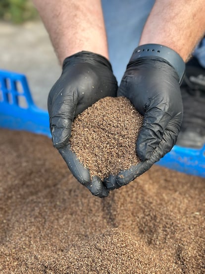 Aunque los números les sonríen, su camino, cuenta Reyes, no fue fácil. Veterinario de formación, contactó con Aguayo para montar una empresa de consultas veterinarias online, “que no funcionó”, lamenta. Pero no hay mal que por bien no venga y, en este contexto, conoció las bondades de la proteína de insecto para alimentación animal y sus beneficios para fortalecer su sistema inmune. “Nos pusimos manos a la obra. Hicimos una web para testear y vender este producto y vimos que, pese a ser más caro que la tradicional harina de pescado (la base del pienso que consumen muchos animales), tenía más tirón por sus beneficios, como la mejora de la supervivencia, un engorde más rápido o el aumento en la puesta de huevos”, explica Reyes. Un negocio redondo en el que murieron de éxito al verse obligados a devolver el dinero por no poder hacer frente a la demanda. “Llevaba 20 años criando insectos para dar de comer a mis animales y tenía la falsa esperanza de que esto no era diferente. Pero un proceso industrial no tiene nada que ver. Tuvimos que empezar de cero”, subraya. Tras un papeleo agobiante donde les pidieron “hasta el número de insectos” que iban a criar, sonríe el cofundador, el primer paso fue averiguar cuál era más rentable. El elegido fue la mosca soldado, que tarda 10 días en crecer, frente al tenebrio, hasta ahora el insecto usado en este mercado que tiene un desarrollo más largo. “Así, podíamos vender antes y a mejor coste”.