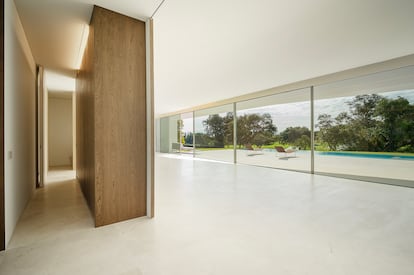 De este unifamiliar de nueva construcción y sin amueblar dicen que es escultura. Que dialoga con la luz y el paisaje creando un equilibrio entre el espacio y la naturaleza. Que sus espacios interiores sorprenden por su meditada geometría y que su contemplación provoca una sensación de calma. Optar a ella cuesta 10,5 millones de euros. La vivienda, con un avanzado sistema domótico, se encuentra en La Moraleja, una de las urbanizaciones más exclusivas de la Comunidad de Madrid, suma cinco dormitorios y ocho baños.