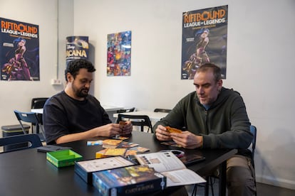“Esto es una locura”, dice Sergio, un informático de 32 años que se define como coleccionista de juegos de cartas, mientras disputa una partida de Riftbound en un establecimiento especializado con su amigo Iván, de 35 años. “Es una locura porque el producto que sale al mercado no toca la estantería de las tiendas, por lo que conseguirlo al precio base es prácticamente imposible y en la reventa se duplica fácilmente”, asegura mientras muestra una carta del juego que cotiza a 80 euros.