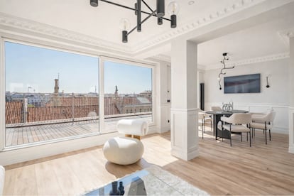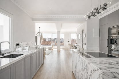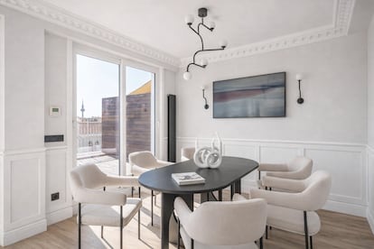 En pleno barrio de Recoletos, en el codiciado distrito de Salamanca de Madrid, se emplaza este ático a estrenar. Situado en una finca señorial de principios del siglo XX, luce un diseño interior contemporáneo y sofisticado. Gracias a su orientación y altura, en una sexta altura, el ático disfruta de luz natural y vistas desde su terraza. La zona de día se compone de un salón-comedor con acceso directo a la terraza. La cocina abierta, totalmente equipada, se integra de forma armónica con el espacio social. La zona de descanso incluye tres dormitorios, dos de ellos con baño incorporado. Además, la vivienda cuenta con y trastero, indican en Barnes.