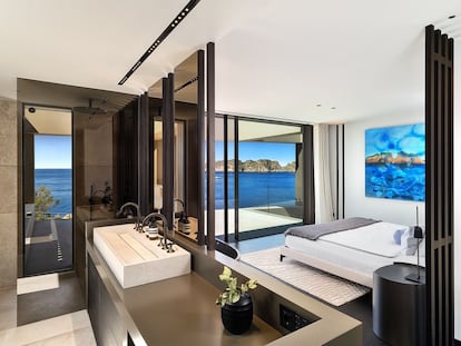 Su nombre es Villa Goya y ha salido al mercado por la cifra de 25 millones de euros. Se emplaza en Santa Ponça, una de las zonas más populares del suroeste de la isla de Mallorca, y es de nueva construcción. Luce un diseño sofisticado y moderno que combina estética y practicidad. La iluminación natural y el generoso espacio definen esta vivienda unifamiliar en la que sobresalen las ventanas de suelo a techo y materiales como la piedra tallada y la madera.