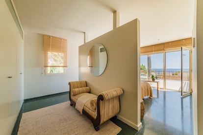 En la planta principal aparece un patio que permite refrescar la casa en verano y un primer dormitorio con vistas al mar y baño incorporado. La transición a las terrazas, tanto cubiertas como descubiertas, con un sistema de sombreado acentúa la sensación de amplitud al conectar el interior y el exterior.