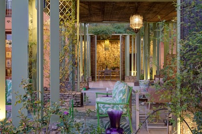 Destacan las cerámicas artesanales realizadas por artistas, azulejos pintados a mano en los baños, y barandillas y balcones escultóricos de herrería artesanal. En el exterior, un patio conduce a una piscina, y en la parte alta del jardín, una yurta mongola alberga una biblioteca y un espacio de lectura, indican en The Singular Space.
