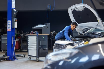 El planeta del mantenimiento del automóvil está viviendo cambios importantes. La llegada de los vehículos eléctricos, aunque tímida (supusieron el 8% de las matriculaciones el año pasado y el 18% si se añaden los híbridos enchufables), está obligando a los talleres a invertir en tecnología y, sobre todo, en formación. Pero es un cambio lento que convive con un parque de vehículos que peina canas. ¿Se acelerará la electrificación? “No tengo una bola de cristal, pero hay algo muy importante, que son las ayudas. Y la política europea, que va a determinar que el vehículo de combustión siga o no siga. Nos vamos electrificando, pero lentamente, no a la velocidad que el resto de los países.