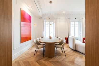 Edificio clásico de 1920, con portal representativo y piso rehabilitado de 208 metros de superficie interior. Son los dos ingredientes de esta propiedad ubicada en el corazón del madrileño distrito de Salamanca, en concreto en el barrio de Lista. La intervención ha primado la distribución inteligente y el equilibrio. El recibidor da paso a un salón comedor y la cocina, independiente y equipada, combina diseño y funcionalidad. Cuenta con tres dormitorios en suite, incluido el principal, que además incorpora vestidor y una sala adicional. Según la agencia de lujo Barnes, el piso se vende completamente amueblado y existe la posibilidad de adquirir plaza de garaje en la finca contigua por 50.000 euros.