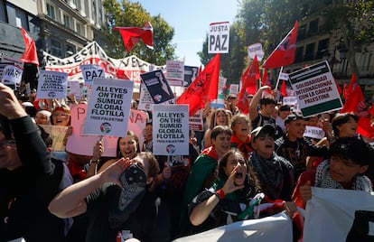 La de Barcelona, que ha congregado a miles de personas, es una de las mayores manifestaciones de estudiantes que se recuerdan en años. En Madrid también han salido a la calle miles de alumnos, que, además de contra la masacre en Palestina, han coreado consignas contra Isabel Díaz Ayuso por su apoyo a Israel. “Los niños de allí no tienen clases, ni agua, ni comida. Nosotros, que tenemos todos los privilegios, tenemos que levantarnos por ellos”, afirma Nora, de 16 años, en la manifestación de Madrid.