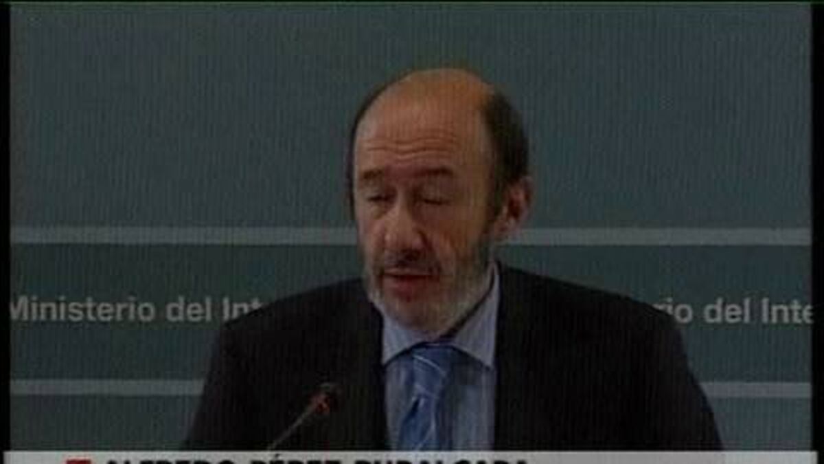 El ministro del Interior, Alfredo Pérez Rubalcaba, ha comparecido al mediodía en rueda de prensa para tratar el presunto primer encuentro del Gobierno con ETA que, según publican hoy dos diarios vascos, se produjo el pasado jueves en un país europeo no precisado. Tras subrayar que "el Ejecutivo nunca confirma ni desmiente ni matiza" ninguna de las especulaciones o noticias que se vienen publicando en la prensa desde el inicio del alto el fuego permanente el pasado marzo, ha hecho hincapié en la promesa de Zapatero de que los primeros en conocer toda "información relevante" que se produzca en torno al proceso de paz serían los grupos parlamentarios". "Y ese momento no ha llegado todavía", ha remachado Rubalcaba.