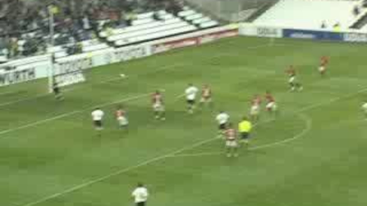 Golazo de Scaloni. El argentino recibe un balón de Pinillos y, sin pararla, dispara desde fuera del área y la coloca por la escuadra de Bizarri.