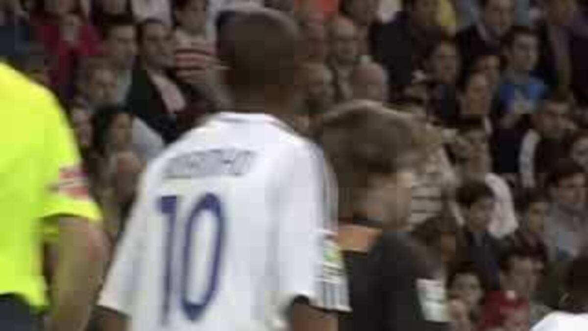 Sergio Ramos remata de cabeza en el área pequeña un gran centro de falta de Beckham desde la banda derecha.