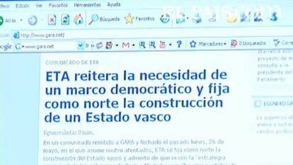 Nuevo comunicado de ETA. La banda terrorista ha vuelto a usar el Diario Gara para difundir un comunicado en el que reivindica los cuatro últimos atentados, entre ellos, el de la Casa Cuartel de Legutiano en el que perdió la vida el Guardia Civil, Juan Manuel Piñuel. El comunicado aparece después de que el Gobierno vasco presentase en el parlamento su proyecto de consulta popular . ETA ha dado la espalda a este plan Ibarretxe, y ha afirmado que ni el PSOE ni el PNV tienen nada sensato que ofrecer.