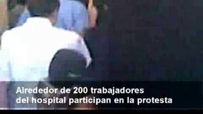 Ayer, dos centenares de trabajadores del hospital, muchos de ellos sindicalistas, se concentraron a las puertas del centro esperando la llegada de Güemes en protesta por la privatización de la sanidad pública madrileña y por la resolución del 31 de julio que limita la contratación de personal sanitario.