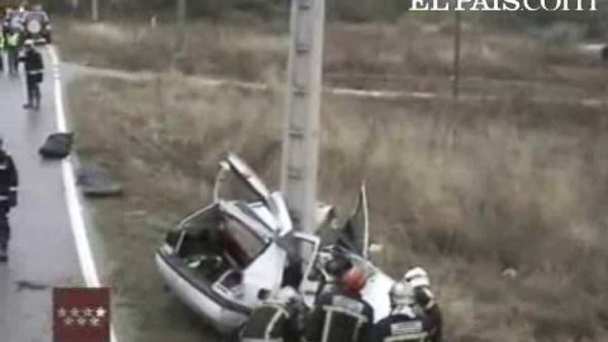 Dos jóvenes han fallecido esta mañana tras chocar el coche en el que viajaban con un poste de hormigón en el kilómetro 1 de la M-224, cerca de Tielmes (Madrid).Vídeo: AGENCIA ATLAS