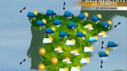 El descenso prolongado y generalizado de las temperaturas durará al menos hasta el viernes. La posibilidad de que las precipitaciones en forma de nieve se registren en cotas bajas, de hasta 400 metros, a partir hoy. El fin de semana entrará por el norte una nueva borrasca que dejará también abundantes precipitaciones.