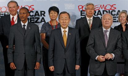 Ban Ki-moon, Kagame, líderes de otros países africanos y el ministro de Exteriores, Miguel Ángel Moratinos, participan en un hotel de Madrid en la reunión del Grupo de Impulso de los Objetivos del Milenio. Estaba previsto que la reunión se celebrase en La Moncloa, con Zapatero y Kagame al frente de la cumbre como copresidentes del grupo. Ante la presión de varias ONG y siete partidos políticos, el jefe del Ejecutivo español ha delegado en Moratinos.