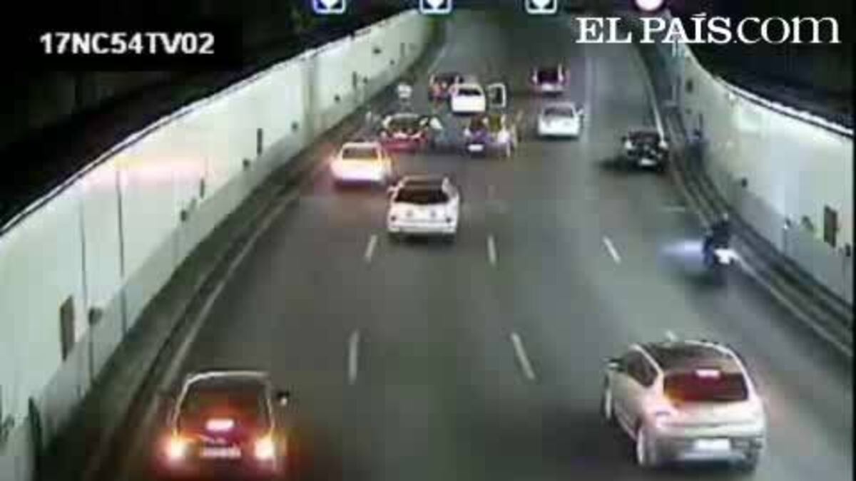 La agresión se originó en una riña de tráfico. El cruce de palabras se convirtió en una persecución en la que no está claro que ocurrió, según la policía: las víctimas aseguran que los agresores les lanzaban botellas desde su vehículo, y estos, ahora detenidos, dicen lo contrario, que fueron los del otro coche quienes les tiraron un botella de plástico. Más claro está el desenlace, grabado por las cámaras del centro de control de pantallas del túnel de la M-30, cuyo personal dio la alarma al ver el caos que se formó dentro del túnel: dos coches bloqueando a otro por delante y detrás, una lluvia de golpes y una fila de vehículos atascados detrás de la paliza.