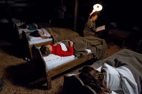 Estamos en el teatre Lliure de Barcelona, en un dormitorio grande que parece un refugio de montaña, con unas 50 camitas. Alba Sola es la narradora, una artista, que explica la historia y a medida que habla transforma con sus voces la habitación en una caja de resonancia, con la ayuda de los efectos que producen dos actores. Resuenan los pasos del ogro, las piedrecitas de Buchettino que deja en el camino para reconocer la vuelta a casa, el crujir de la carne asada que devora la familia, los llantos de la madre pero también resuenan la palabras que recuerdan que los cuentos infantiles nunca han sido fáciles. "Cuando el padre degüella a sus hijas por equivocación ha sido un poco fuerte", decía una madre al salir. Pero así son los cuentos de siempre. Algunos psicólogos apuntan que los cuentos tradicionales son un buen instrumento para conducir los conflictos inconscientes de los niños. La compañía Societas Raffaello Sanzio es la responsable de esta extraordinaria aventura. Una aventura que abre la imaginación de sus espectadores. Bueno de casi todos. El domingo un padre aprovechó para dormir. Fueron solo 10 minutos. Excusas.