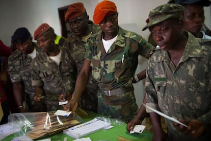 Soldados registrándose para votar en Guinea Bissau. Foto AFP vía Africa Review.