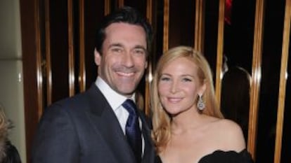 El problema de interpretar a alguien tan carismático como Don Draper es que todos esperan que entres por la puerta con su cara de ladrillo. Es como la exigencia a un cómico de contar chistes todo el rato. Pero al protagonista de Mad men le basta su incesante sonrisa (y evitar el pelo engominado) para transfigurarse sencillamente en Jon Hamm, el actor que no era nadie hasta hace cinco años y hoy simboliza al hombre retro y vanguardista al mismo tiempo. Por ceder a los rigores de la prensa, acude a la cita en el Beverly Hilton de Los Ángeles trajeado de Calvin Klein. “Me mandan mucha ropa. Tanta, que no tengo excusa para ir como un cerdo”, lanza con sorna. Han pasado dos días desde que cumpliera 41 años y su mánager nos ofrece compartir un pastel para festejarlo.