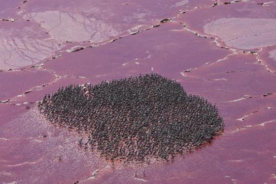 Vista aérea de una bandada de flamencos enanos en el lago Natrón (Tanzania)./ Juan Carlos Muñoz