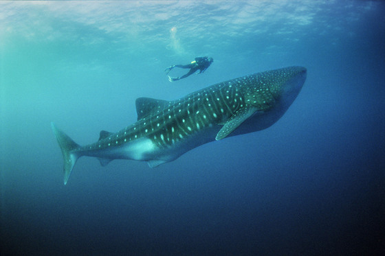 Un buceador nada junto a un tiburón ballena. / Louie Psihoyos
