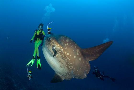 Al igual que el pez luna (Mola mola), otro gigante del mar de hasta más de cuatro metros y 2.300 kilos, vive en todos los mares templados y cálidos del planeta. A a pesar de su imponente aspecto ambos son inofensivos.