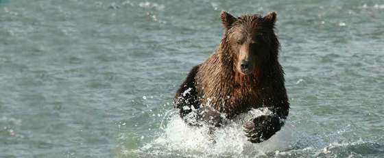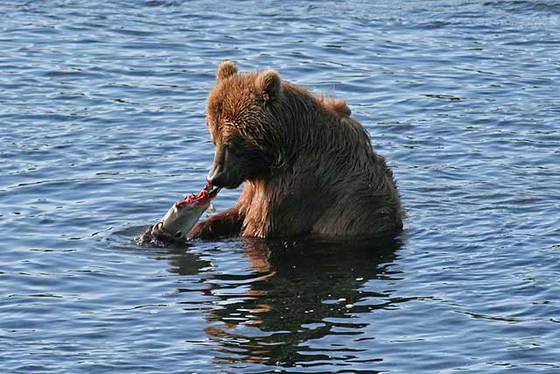 Un oso pardo pescando salmón en la isla de Kodiak, en Alaska. / Turismo de Kodiak