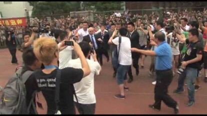 Un vídeo publicado por el portal de noticias Xinmin muestra cómo el cordón de seguridad se rompe y los policías son incapaces de sacar a quienes caen al suelo. El exjugador del Manchester United, por su parte, tiene que dar media vuelta poco después de haberse bajado de un flamante Bentley negro. Lógicamente, nada más conocerse lo sucedido, el acto previsto se ha cancelado. La reacción del futbolista ha llegado poco más tarde a través de su cuenta oficial de Weibo, el Twitter chino: “La respuesta de hoy en la Universidad de Tonji ha sido magnífica. Siento no haber podido salir al campo con los equipos. Ha sido imposible pasar a través de la muchedumbre. Me han dicho que hay heridos, espero que estén bien y que se recuperen lo antes posible”.