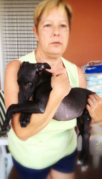 encantada a la llamada de SOS Galgos para hacerse cargo del pequeño galgo