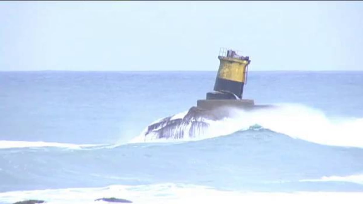 La fuerza del mar parte el faro de Burela.Foto: atlas | Vídeo: ATLAS