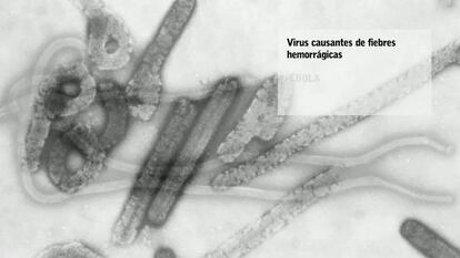 Es una enfermedad poco frecuente. Las epidemias son limitadas, pero siempre causan pánico porque el ébola es mortal entre el 25 y el 90% de los casos. Tras un periodo de incubación de 21 días, el virus causa una fiebre intensa, cefaleas, dolor muscular, conjuntivitis y debilidad general. La siguiente fase incluye vómitos, diarreas y, a veces, erupciones cutáneas. El virus se propaga por la sangre y paraliza el sistema inmunitario. Es especialmente temible porque el organismo no detecta estos virus de inmediato. Cuando el organismo reacciona en muchos casos ya es demasiado tarde. Para entonces, el virus ha producido coágulos que obstruyen órganos vitales y causan hemorragias graves. Los pacientes pueden tener un sangrado abundante.