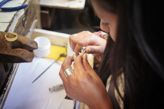 Cuarta fotografía: Una joyera de Amalena en trabajo