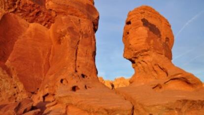 A menos de una hora de Las Vegas, de sus luces y sonidos de tragaperras, este parque estatal es toda una invitación a la calma. En plena reserva india de Moapa, sus rocas y formaciones de arenisca roja brillan con los primeros rayos de sol como si estuviera en llamas. Un lugar que no parece de este planeta... tanto es así que películas como Star Trek se han rodado allí.