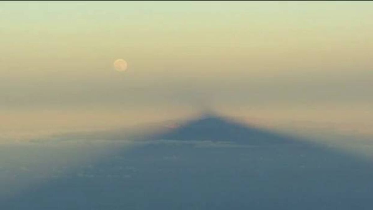 En Tenerife, además, disfrutaron de un extra, ya que la sombra del Teide se alineó este domingo con la salida de la superluna. Un centenar de personas pudo asistir al espectáculo desde el punto más alto de España, donde se instalaron para la ocasión dos potentes telescopios, informa Europa Press.
